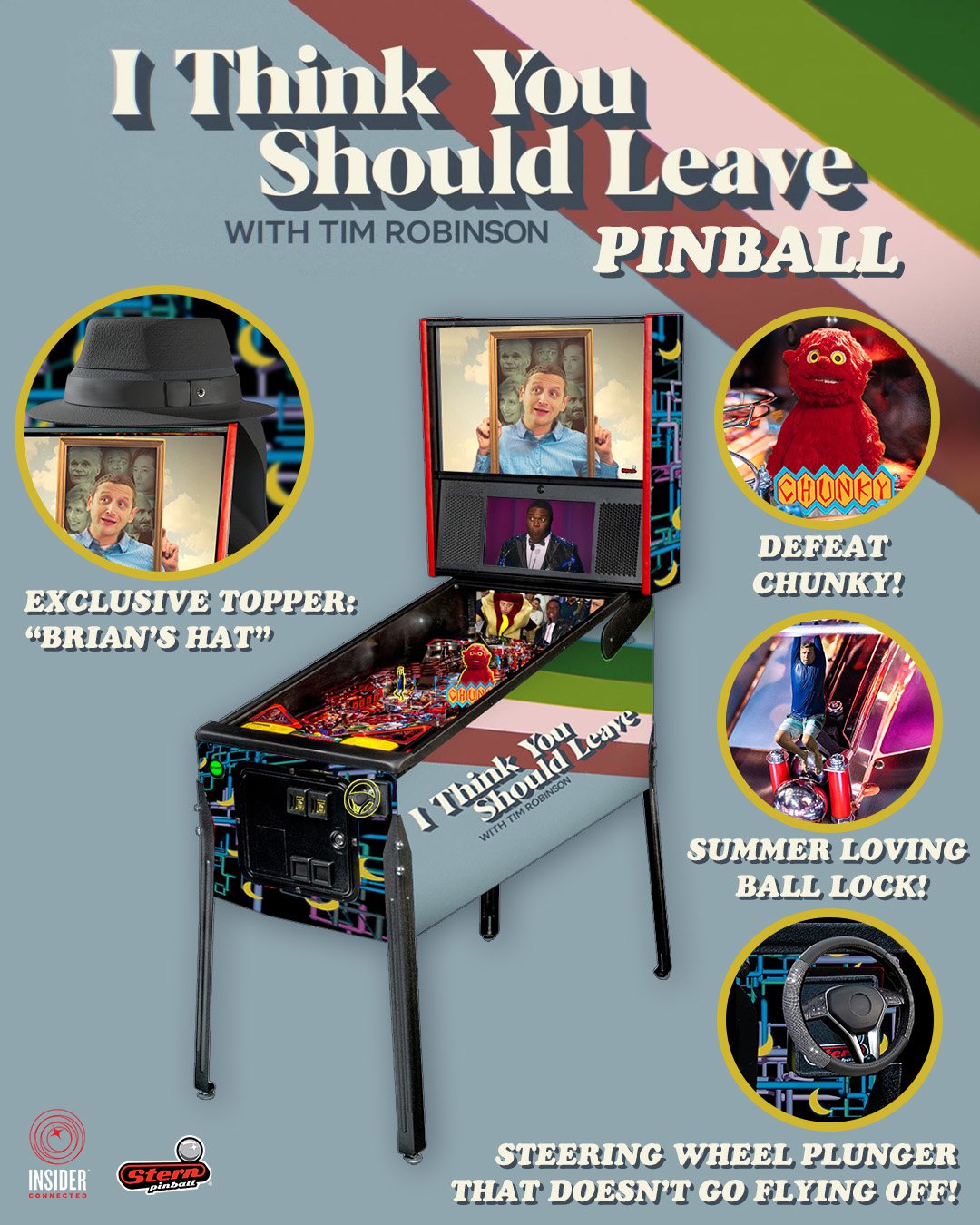 Poster meant to convey the announcement of a new pinball machine based on Netflix’s I Think You Should Leave sketch comedy series. The poster weaves in elements of the show and contextualizes them for a theoretical pinball machine.